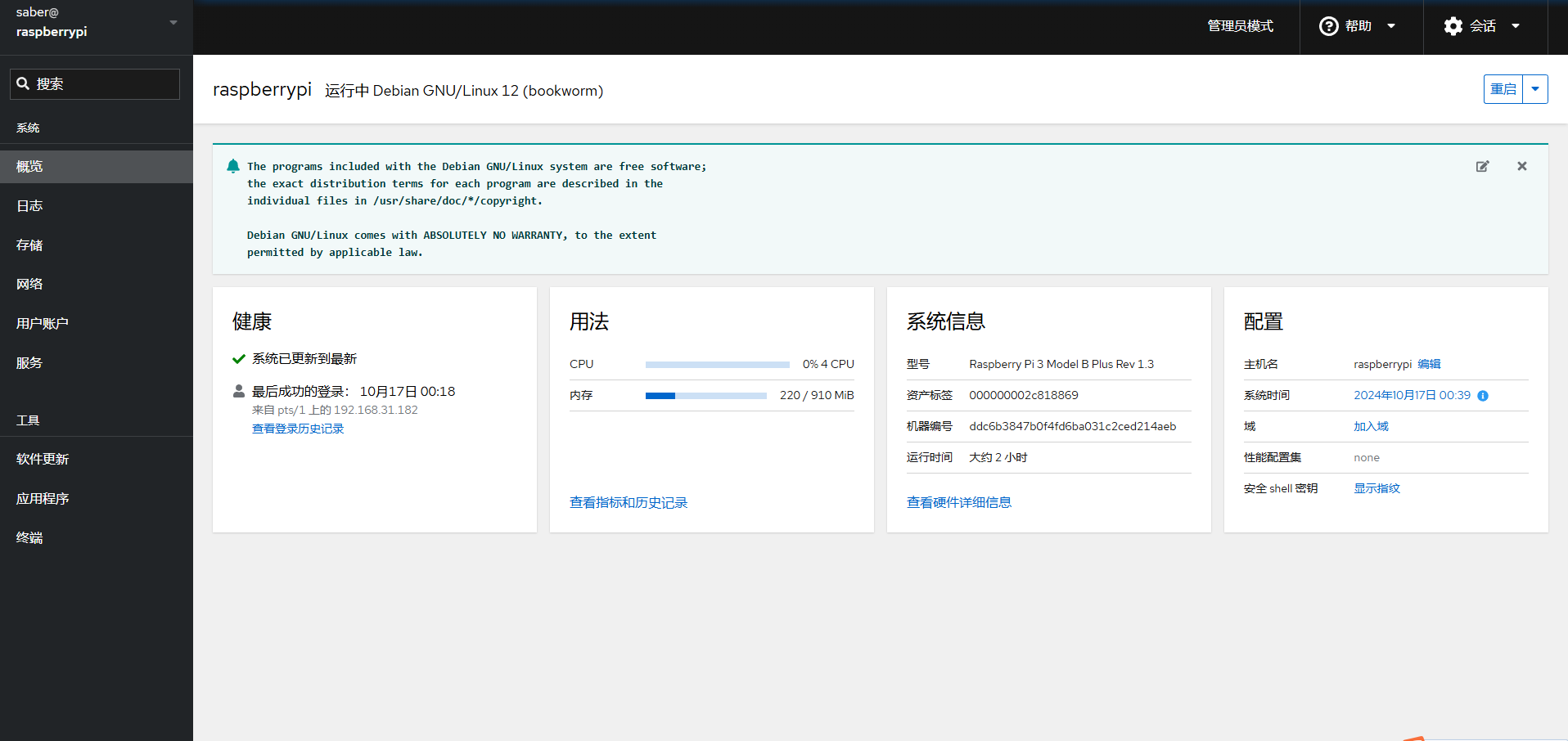 树莓派3B 采用Samba + Cockpit搭建NAS